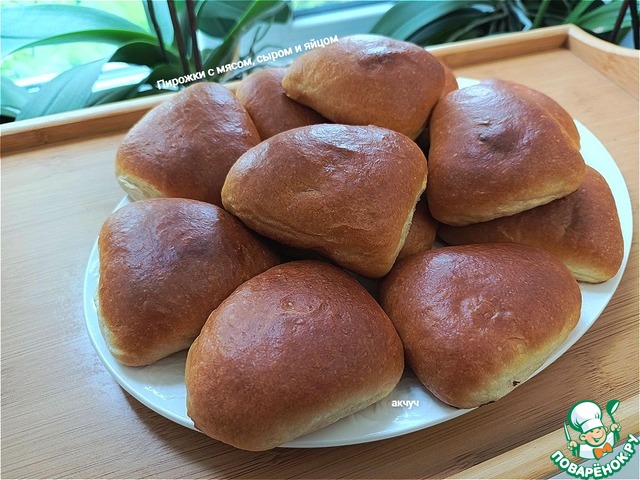 Муки ушло меньше (400 г). Тесто замешивала в планетарном миксере. Оно такое приятное, мягкое получилось. Лепила привычным для себя способом, так как спешила. В начинку не стала добавлять яйца и сыр по просьбе родных. Верх смазывала дважды молоком. Получилось 17 булочек, которые выпекались 25 минут при 180 градусах. Получились вкусные, сытные, мягкие пирожки.