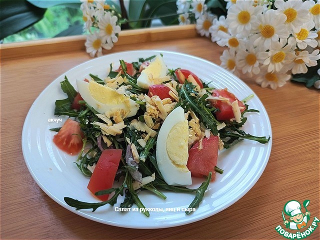Пропорций не придерживалась, делала все на глаз. Яйца и помидоры обычные. Я не люблю яйца в овощных салатах, но здесь они замечательно вписались. Получился вкусный салат.