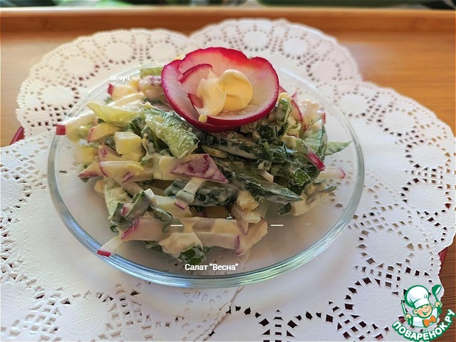 Весной организм требует легких витаминных салатиков. Салат получился вкусный. Отличная заправка. Я вообще люблю бальзамический уксус, он дает замечательную изюминку соусу. И да, я использовала пекинскую капусту и сербскую брынзу (забыла ее сфотографировать).