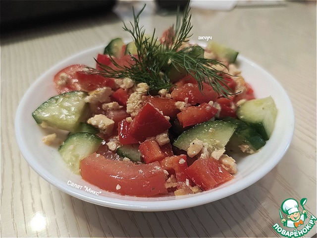 Я тоже решила, что буду делать салат с маслом, так как сыр у меня был маринованный в масле со специями. Я его вилкой раскрошила и добавила вместе с маслом в салат. Получилось вкусно! От себя добавила еще укроп.