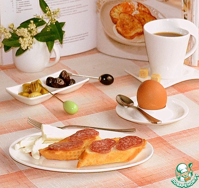 Сегодня завтрак бутербродами с колбасой и оливками.