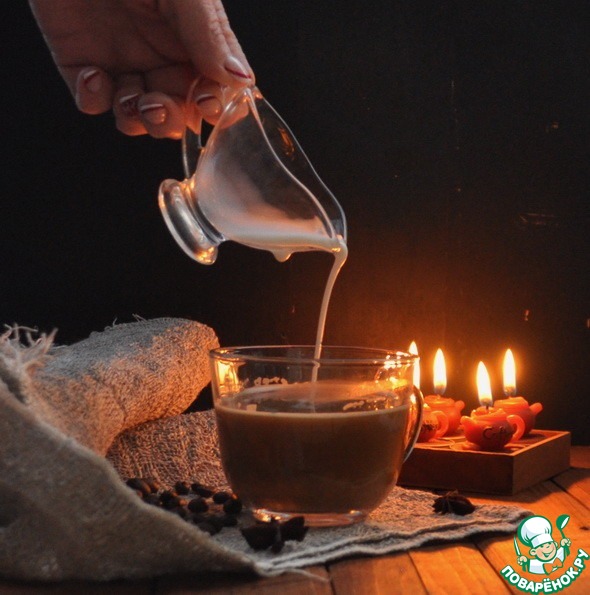 Зерна кофе, кекс, мороженое и со свечами на