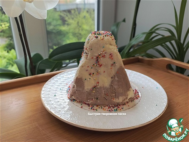 Не смотрите на корявенький результат. Впервые делала пасху из двух видов. Не подумала, что надо при выкладывании в форму посильнее утрамбовать, чтобы не было пустот. Но каков вкус!!! Очень понравилась пасха. Можно делать хоть каждый день! Мягкая, кремообразная, в меру сладкая. Никаких дополнений не требует. Творог прокручивала на мясорубке.