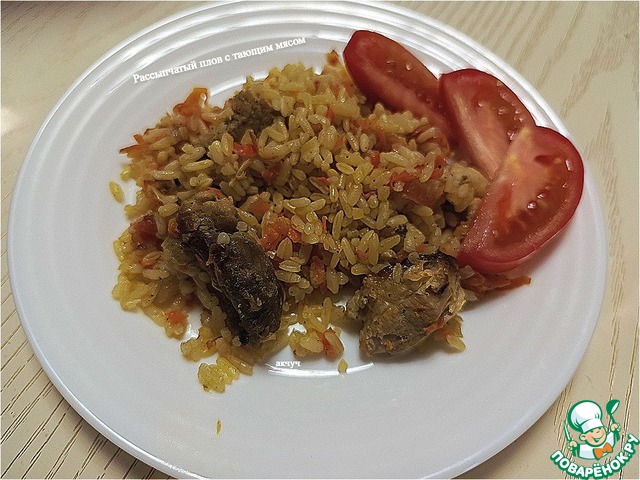 Мясо, и правда, тающее. Очень вкусный плов. Я использовала свинину, поэтому начальный этап с водой немного сократила по времени. Из специй брала лишь соль и перец, чеснок предварительно измельчила.