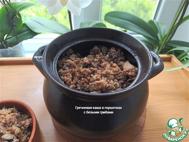 Заранее была уверена в успехе. Использовала небольшой кусок свинины (постной) и шампиньоны 5 штук, но больших (из заморозки). Крупу (1 стакан) не обжаривала. Лук (1 головка большая) и грибы обжаривала в подсолнечном масле. Грибы дали много влаги, поэтому заливала в горшочек 1,5 стакана бульона. Соли 1 ч.л. И всю эту красоту в духовке держала при 180 градусах 1 час. Можно было бы увеличить температуру и посмотреть, может время приготовления уменьшилось бы. А получилось ооочень вкусно и сытно!!! Буду повторять обязательно.