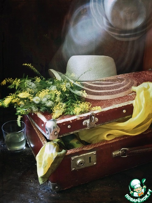 Это, конечно, не фуд, а скорее натюрморт, но эффект использован тот же. Здесь самая длинная выдержка из показанных кадров. Рукой держу шляпу и кладу ее на чемодан. Но руку не видно из-за длинной выдержки. Самое долгое время из 25 сек. шляпа лежит на чемодане, чтобы она была там более заметной.