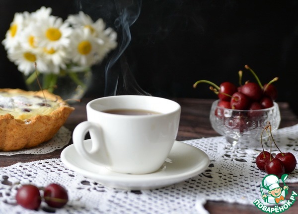 Сегодня, как всегда, утро посвятила любимому хобби. Вчера испекла любимый пирог. Он у меня называется "Чизкейк "Черешня с хвостиком"" https://www.povarenok.ru/recipes/show/76801/, загружала аж 11 лет назад. Делаю очень часто в сезон, а для себя сделала полпорции на сахзаме. В один пост всунула 4 задания. Сразу хочу сказать, когда делаете несколько дублей с жидкостями, надо смотреть на потёки, а то будет, как у меня в каплях чая кружка. Уже сейчас вижу завалы, хотя подкладывала, но постоянно двигала, вот и итог. Ну и местами нет фокуса, там, где надо.