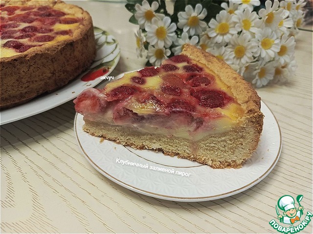 Не помню, чтобы пекла что-то с клубникой. Решила исправиться. Сметана была лишь 10%, крахмал картофельный и обошлась без стружки, слегка посыпав верх коричным сахаром. Выпекала 45 минут при 180 градусах. И да, ягоды уменьшила до половины. Резала еще теплым. Получился вкусный пирог. Но очень сладкий. В следующий раз уменьшу количество сахара в начинке.