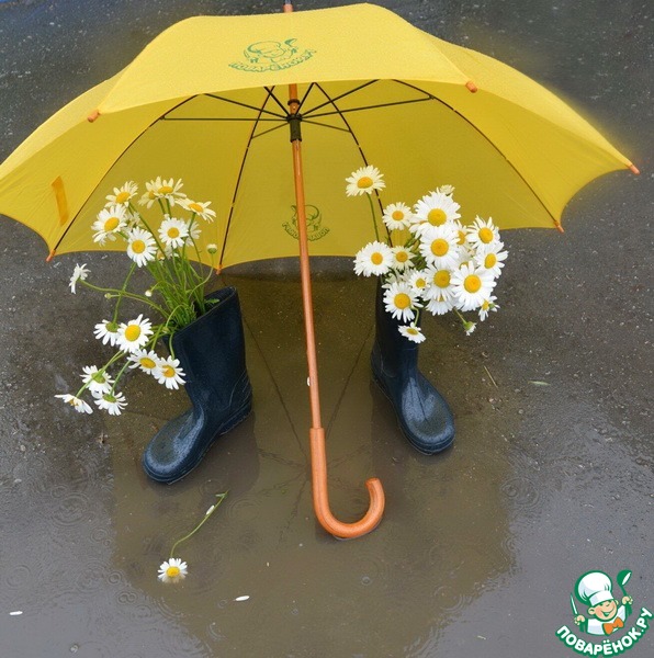 А фото с сапогами с ромашками под зонтом помимо красоты, дарит еще столько позитива и поднимает настроение.