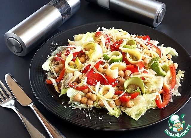 Как положено начну с салатика. Замечательный салатик от СкарлеттО "Салат с нутом, перцем и кабачком". Ссылка на рецепт: