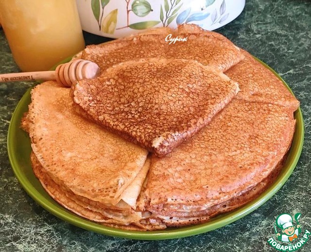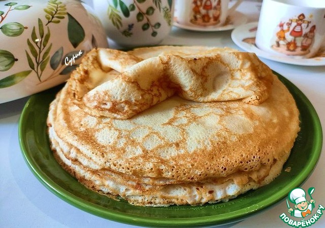 Блины, конечно, вкусные получились. Но… муки в ингредиентах явно перебор! Я добавила один стакан. Получилось отличное тесто!