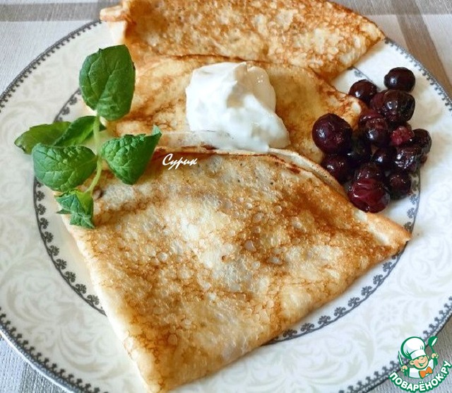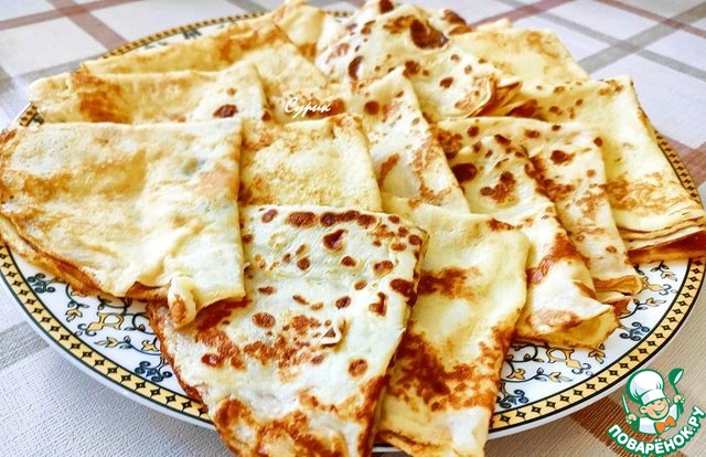 Великолепные блинчики! Всё по рецепту! Получилось много, жарились очень быстро, а это ох как радует! Вкусные, нежные, воздушные, тоненькие!
