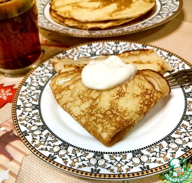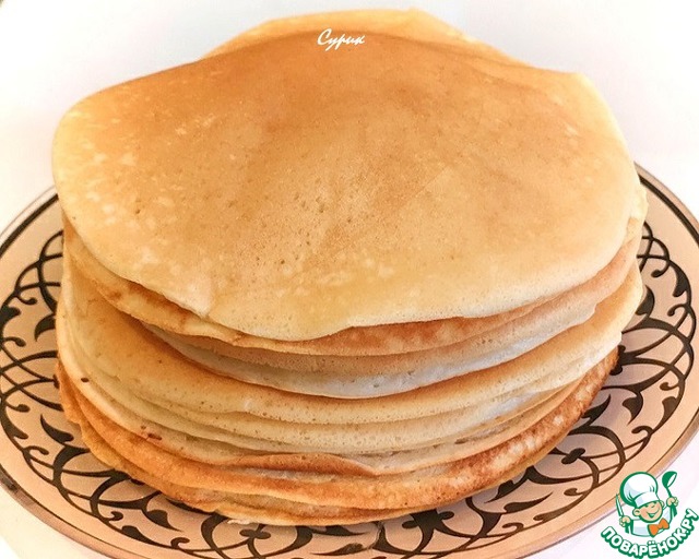 Я раньше, так и готовила блинчики: молоко + вода. А потом стала практически всегда: молоко или кефир, сливки, благодаря нашему сайту. Столько рецептов! Но молоко+вода получаются всегда шикарные блинчики! И этот рецепт не исключение! Очень вкусные, нежные, тоненькие блинчики! Легко и просто переворачивались. Быстро нажарила. До начинки у меня руки не дошли. Наслаждались блинчиками со сметаной!