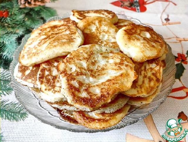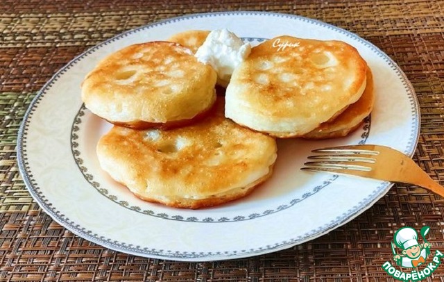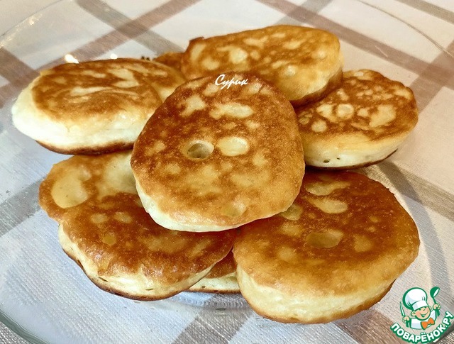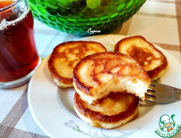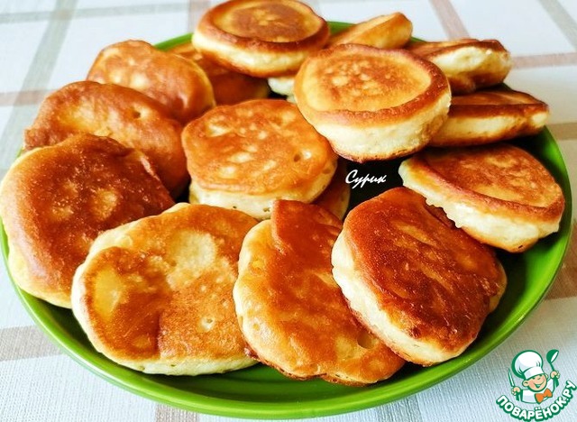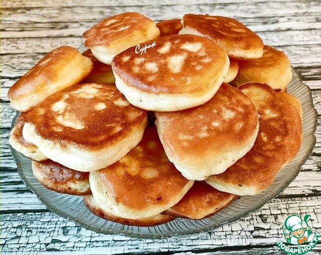 Замечательные оладушки! Я готовила тесто на своей простокваше. Из расчета 500 мл на 2 стакана (250 мл) муки + соль, сахар.