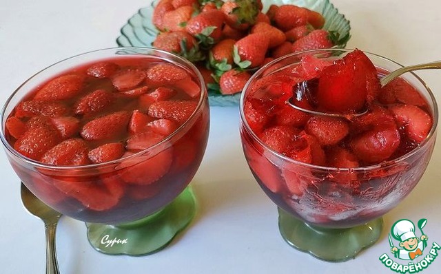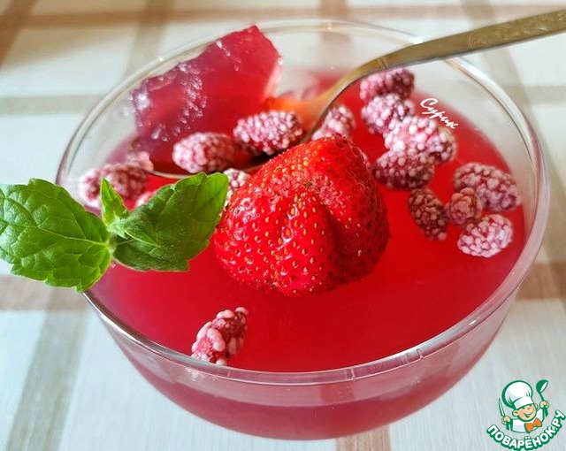Вкусно! Такая прохлада от этого желе! А в жару … отлично! У меня смородина черная из заморозки и клубника свежая.