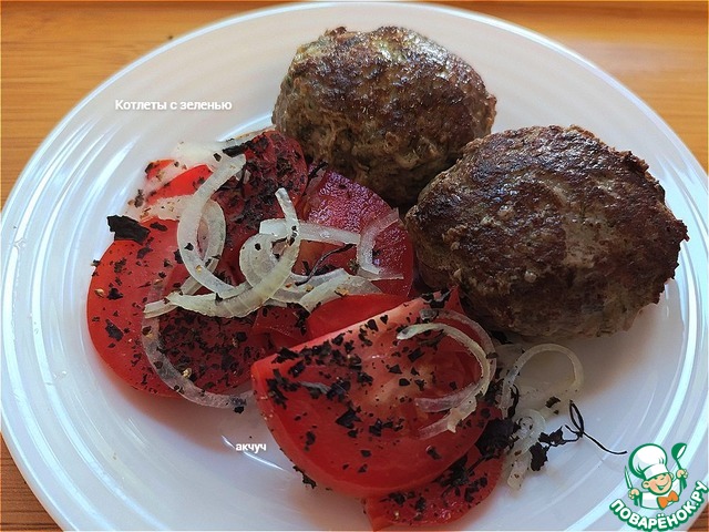 Заинтересовало добавление зелени. Использовала укроп, базилик и мяту. Остальное по рецепту. Получились вкусные котлетки с тонким привкусом мяты. Вся семья осталась довольна.