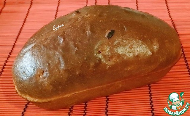 Великолепный хлебушек получился! Какой же он вкусный, какой ароматный! Все ингредиенты по рецепту, но при замесе теста добавила 2 ст.л. муки. Тесто замесила в ХП. Формовка хлеба у меня обычная. Сверху смазала молоком. Выпекала в духовке 30 мин. при 180 град.