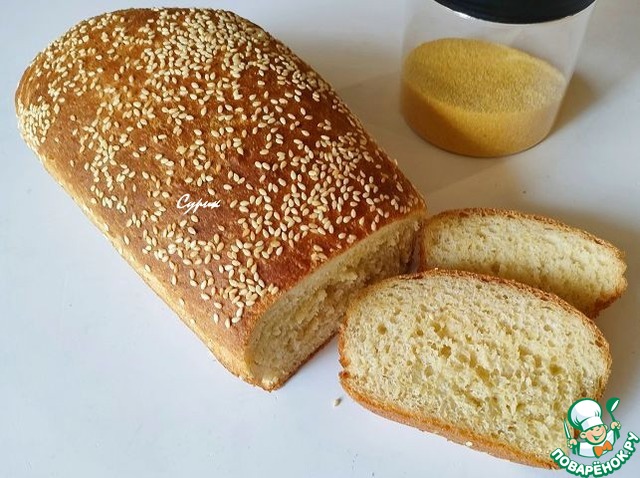 Увидев утром рецепт, не задумываясь пошла на кухню – надо приготовить этот хлебушек! Тесто замесила в хлебопечке. Я добавила кукурузную поленту. «Колобок» получился идеальный. Выпекала в духовке 25 мин. при 180 град. И… вот он готов! Великолепный хлеб! Очень и очень вкусный! А какой он красивый – желтенький. Очень понравился! И, действительно, воздушный. Я нарезала ещё теплый хлеб, не могла больше ждать.