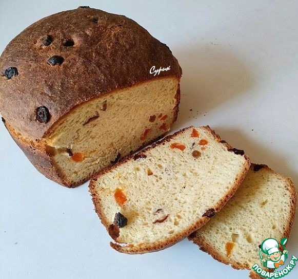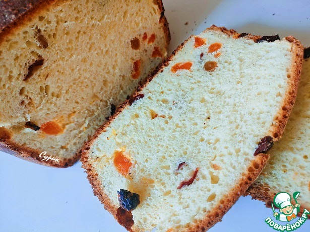 Великолепный хлебушек получился! Десертный! На вкус – кулич! Нам очень понравился! Вяленую вишню заменила вяленой клюквой. Всё остальное по рецепту. Тесто отлично выросло, приятное. Хлеб вкусный, воздушный, ароматный!