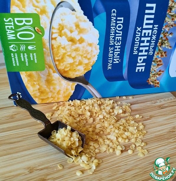 Хлопья пшённые купила недавно, ждали своего часа. Тесто замесила по рецепту в ХП, но при замесе добавила ещё одну столовую ложку муки. Выпекала в духовке при 180 град. 40 мин.