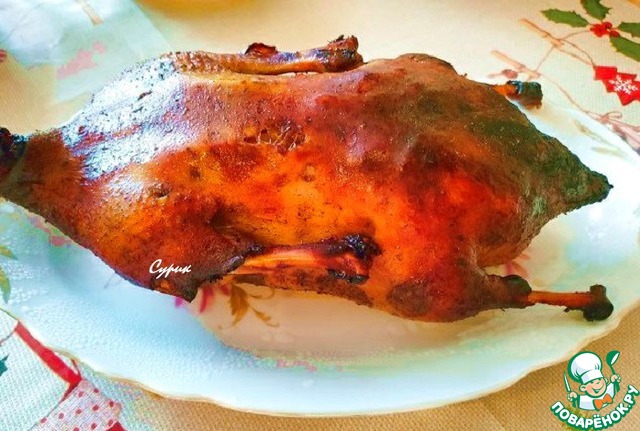 Интересный способ приготовления! Всё по рецепту сделала. Сфоткала до нарезания утки, т.к. потом не очень получилось фото. При выпекании какой же был аромат!!! Необыкновенный! Утка получилась очень вкусная, ароматная, нежная, мягкая! Набор специй и коренья ... супер!