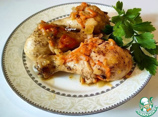 Вкусные нежные и ароматные голени куриные получились. Я чуть-чуть обжарила лук с морковкой, а потом добавила голени куриные. Далее по рецепту. Просто, быстро, без хлопот.