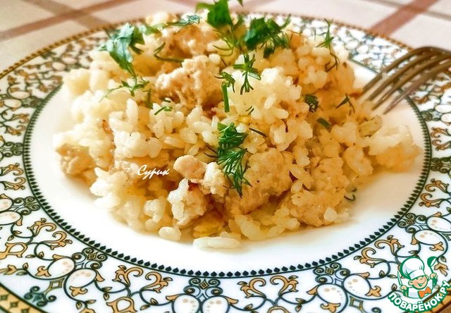 Отличный рис! Не ярко, но … очень вкусно! Добавила набор специй для плова. Фарш куриный. Корицу не рискнула добавить.