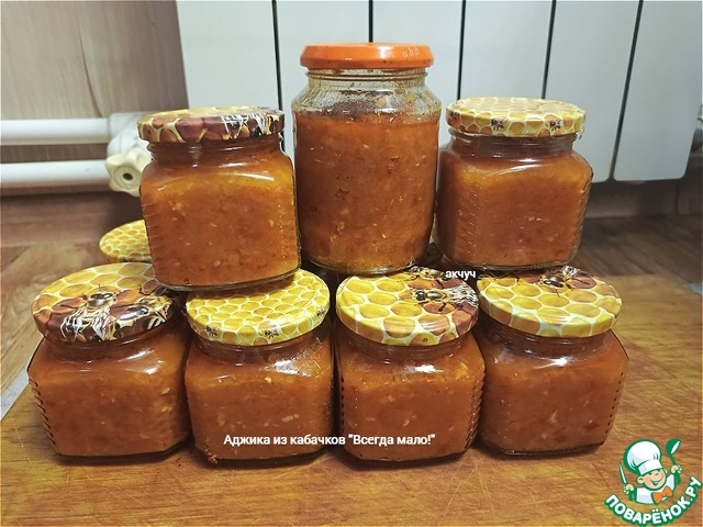 В поисках рецепта для ликвидации изобилия кабачков нашла данный рецепт. Готовила половину нормы. Получилось 11 баночек по 250 г. Когда пробовала, сначала показалось, что совершенно не остро, но с каждой секундой вкус все ярче раскрывался и острота прибавлялась. Будем ждать, как баночки перезимуют.