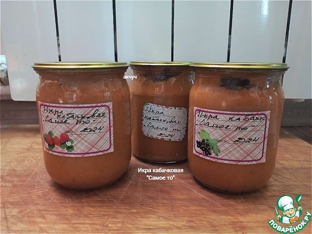 Готовила половину нормы. Вместо томатной пасты использовала кетчуп и томатный соус, обошлась без лаврушки. Перестраховалась и добавила 1 ст. л уксуса. По времени готовила меньше, просто определяла на вид и вкус. В конце измельчила погружным блендером до однородного состояния. Получилось три баночки по 0,5 л и еще чуть-чуть на пробу. Получилась вкусная икра, простая в приготовлении из минимума продуктов. Теперь буду ждать, как баночки перезимуют.