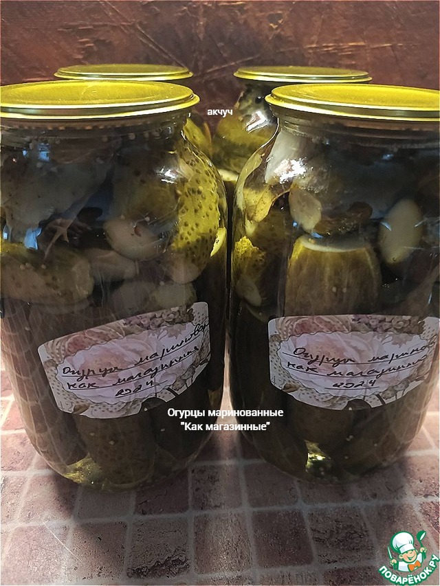 Я не стала добавлять укроп, остальное по рецепту. Закрутила 4 баночки по 1,5 литра. Немного напутала: заливала первый раз не просто кипятком, а уже с сахаром и солью. Надеюсь, это не повредит заготовкам. Ждем результат!