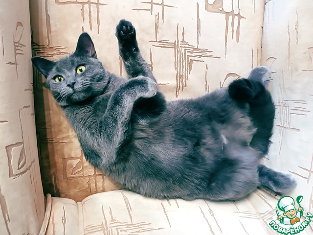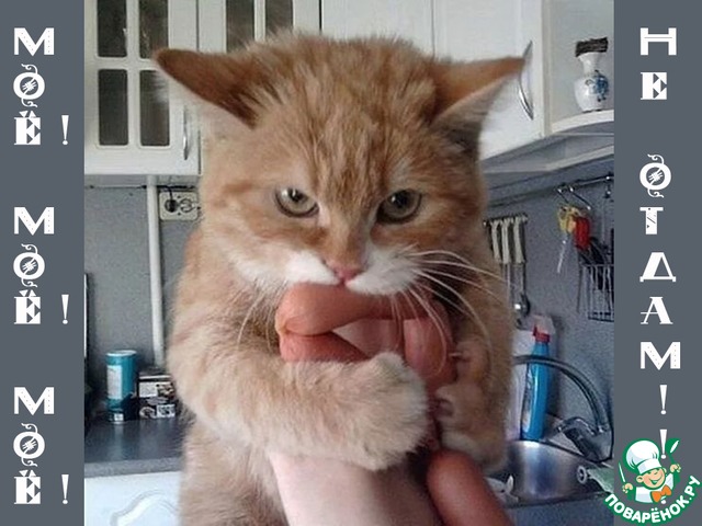 А это уже одна из наших кошек, Тучка. Она домашний дегустатор, помогает выбрать качественные сосиски и колбасу