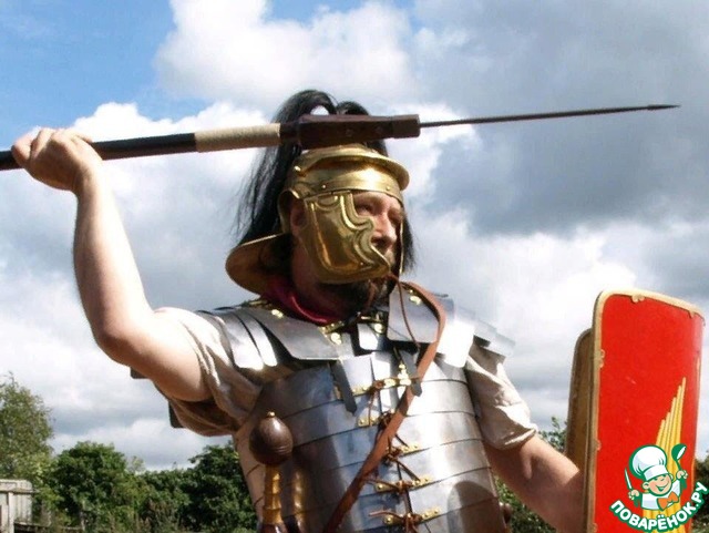 Реконструктор бросает римский пилум