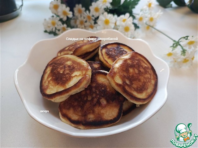 Готовила половину нормы. Получились вкусные нежные оладушки с хрустящими краями. В следующий раз кефир буду использовать теплый. Мне кажется, что так оладушки получатся пышнее.