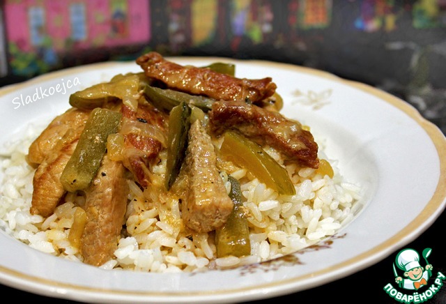 Рецепт написан с юмором, сразу понятно, что писал мужчина. Тем не менее, мясо получилось нежным, а все блюдо в целом - очень вкусное и сытное. И полезное, так как готовится в собственном соку и без масла