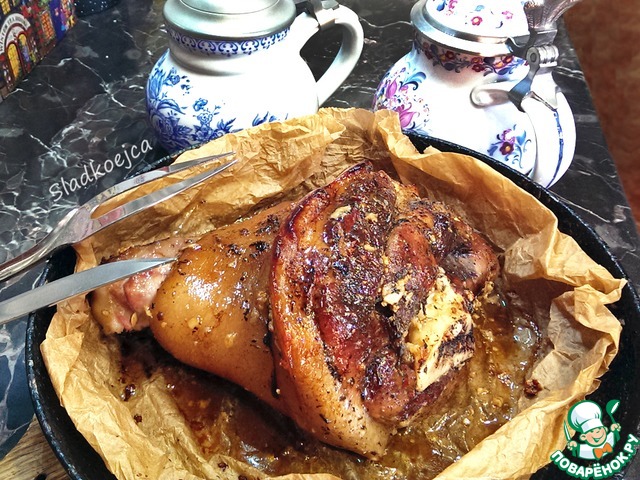 Конечно, рецепт не очень простой и надо повозиться. Но, каков результат! Нежнейшее пряное мясо с хрустящей корочкой… Шикарная еда под темное пиво, да что там - это просто кулинарное наслаждение! Очень рекомендую приготовить!