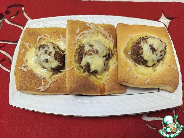 Скажу сразу, что результатом остались очень довольны. Но не обошлось без приключений. Тесто покупала такое уже давно, но всегда там было два пласта общим весом 500 г. А тут попалось на 1 кг. Думала, что будет 4 пластинки, а оказалось две, но толстые. Пришлось после разморозки раскатывать. Но главное, что в итоге все получилось. Я не стала смазывать желтком, так как тесто и само хорошо зарумянилось за 25 минут. Ну а сыр положила, как и по рецепту, в конце. И да, забыла сказать, что фарш я брала свиной. Запекала на среднем уровне духовки при 190 градусах. Получилось вкусно и сытно.