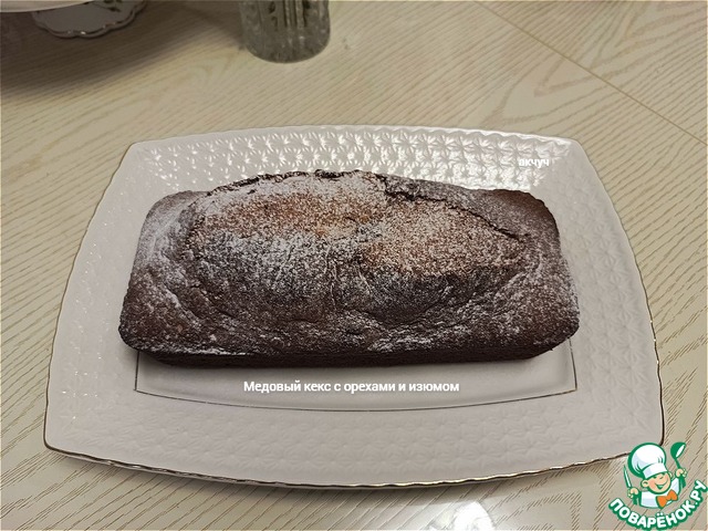 Готовила без изюма, остальное по рецепту. Выпекала всего 30 минут при 180 градусах. Остужала на решетке, прикрыв верх полотенцем. Получился вкусный кекс.