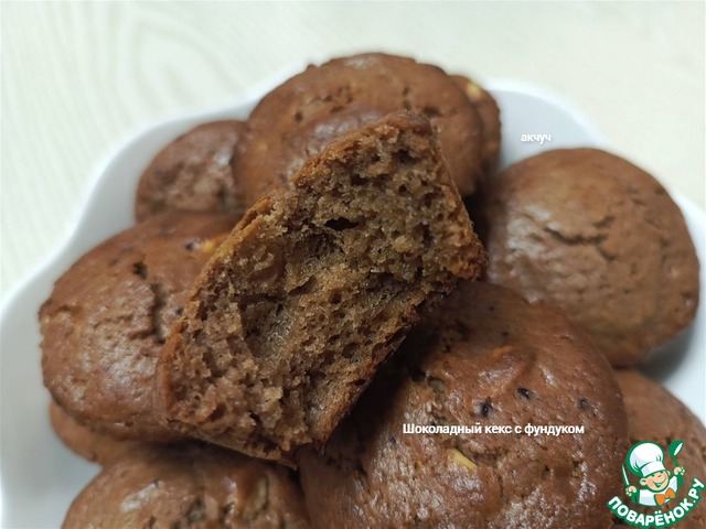 Мне срочно требовалась штучная выпечка! Рецепт подкупил простотой исполнения и доступностью продуктов. Арахис (вместо фундука) у меня был уже обжаренный, поэтому обошлась без коньяка. Выпекала в порционных формочках 25 минут при 180 градусах. Не стала заморачиваться с глазурью. Получились замечательные, вкусные кексики! Пекла практически на ночь, поэтому фото только такие получились.