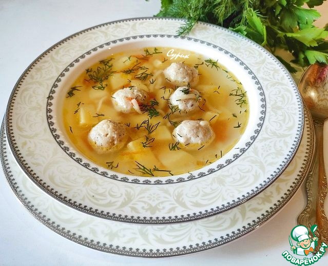 Конечно, это всем известный суп, который мы любим. Фрикадельки я кладу, когда почти сварится картофель. Они быстро варятся.