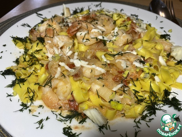 Паста с креветками, лимоном и чесноком