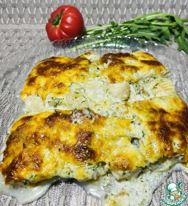 Рыба с морским гребешком, сыром в духовке