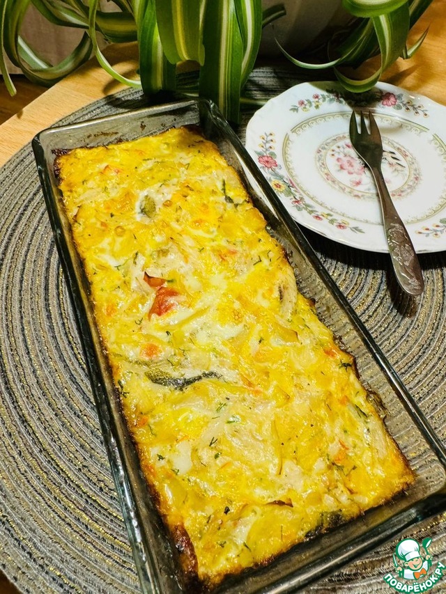 Обалденная запеканочка получилась.Безумно сочная и очень очень вкусная.как в горячем так и в холодном виде.Готовила из отварного хека.Мне было очень вкусно!!!