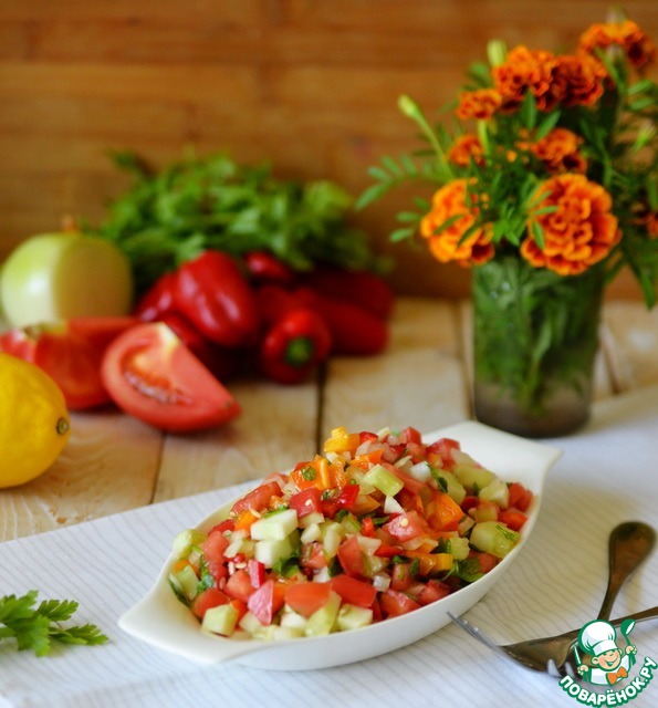 Салат-сальса "Израильский". Тот же овощной салат, но мелкой нарезки. Салат, он и в Африке - салат))