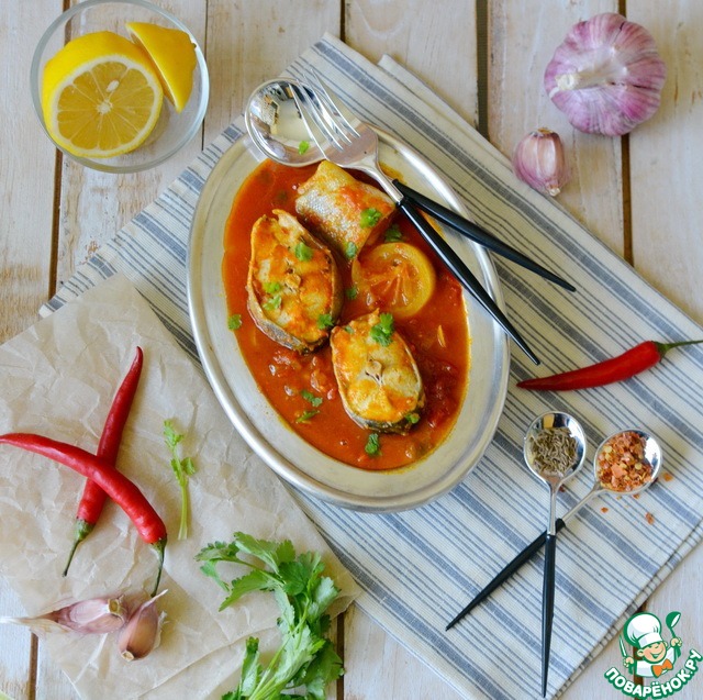 Храйме. Блюдо северо-африканской кухни. Рыба, тушёная в остром, пряном овощном соусе. Увидела в шоу "Битва шефов" и сразу решила приготовить. Я многие блюда оттуда присматриваю. По классике должна быть белая рыба, но у меня бюджетный голец (красная).
