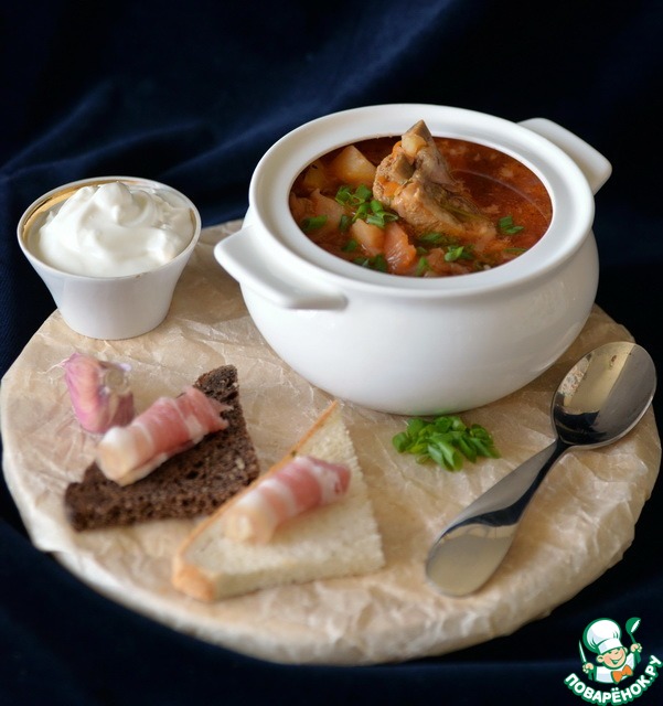 Снова был борщ, два раза. Тренировалась по рецептам Ивана Ивановича. Но, как говорится "От добра добра не ищут". Мой вариант проверенный и ничем не хуже. А ещё часто варю на ... свиных хвостиках. Смотрятся они двусмысленно (по Фрейду), но это очень вкусно. А ещё такой борщ застывает, как холодец, потом ножом отрезаю и грею в микроволновке.