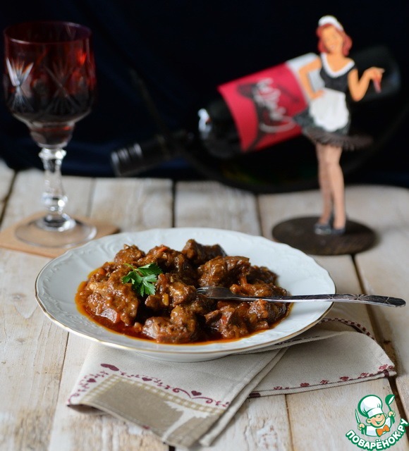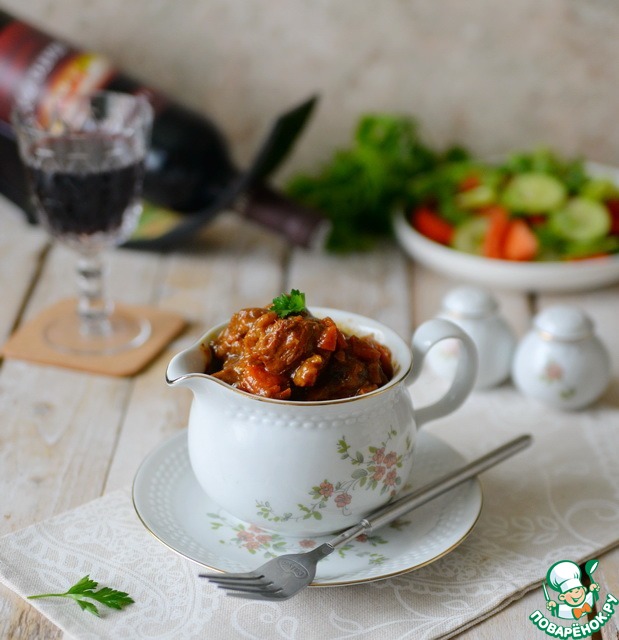 Французская классика "Бёф бургеньон". Давно хотела сделать. Но говядина "кусается", всё же купила мякоть лопатки по 804 руб. И это ещё дёшево. Вино, конечно, не Бургундское, а Дагестанское. Открытое стояло полгода, надо было использовать. Тушила почти 3 часа в мультиварке, есть и такой вариант в интернете. Очень вкусное, нежнейшее, ароматное мясо. Ела с овощным салатом.