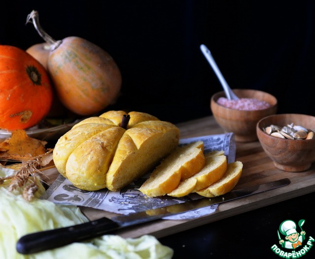 Ну и в финале "песня": Тыквенный хлеб. Готовила исключительно из-за фото, а получилось очень вкусно. Хотя я хлеб почти не ем. Делала на тыквенном пюре (варила тыкву), добавила Прованские травы и тмин. Одну булку отвезла детям, внукам. Хлеб сразу на стол положила и, пока "здоровались, обнимались", их два кота погрызли с разных сторон. Потом, конечно, обрезали. Внукам и невестке очень понравился хлебушек, хотя невестка не любит Прованские травы. И ещё. Я ем по кусочку в день, хлебу уже 2 недели, но его вкусовые качества не пострадали. Храню в холодильнике.