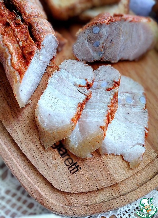 А сало... Бабушка с дедушкой жили в деревне, своё хозяйство. Бабушка делала рулет из сала с брюшины с чесноком и перцем, обмазывала его жидким тестом из муки и воды и запекала в русской печи... Я пробовала повторить также в духовке, но блин... русская печка, она и есть русская печка...