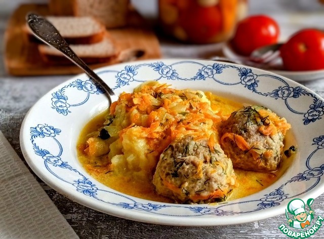 Обед у меня или первое, или второе. Сегодня у меня картошка мятая с тефтелями со сметанным соусом. Без изысков. В сковороде притомила лук с морковкой, добавила сметану, перемешала, налила воды горячей, посолила по вкусу. Выложила тефтели и готовила до их готовности. Присыпала укропом. Блюдо на все времена. Люблю много соуса в тарелке, поэтому беру её глубокую. Тефтели всегда были востребованы, особенно в томатном соусе, да и в сметанном - тоже!