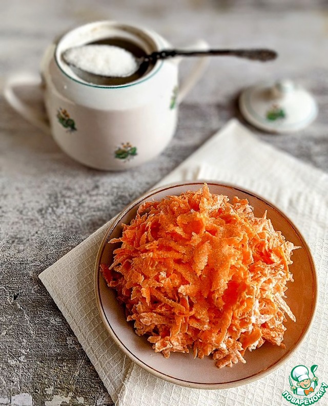 Помню маленькая в детстве всегда ела натёртую морковь со сметаной и песочком. До сих пор ем почти каждый день. Очень любила рисовать, в садик не ходила. Сижу рисую, а бабуля натрёт мне морковки и подставит на стол, не спрашивая меня. Я могла рисовать целыми днями. Так она меня подкармливала витаминами. Приносила всегда на блюдце. Вот и я нашла старое-старое блюдце и выложила морковь в него.